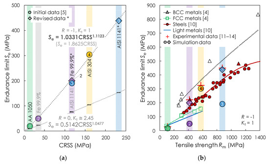 3.1. Relation between the Critical Resolved Shear Stress and the Fatigue Endurance Limit