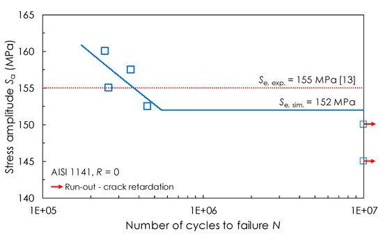 - Mlikota, M.; Schmauder, S.; Božić, Ž. Calculation of the Wöhler (S-N) curve using a two-scale model. Int. J. Fatigue 2018, 114, 289–297. [Google Scholar] [CrossRef]
