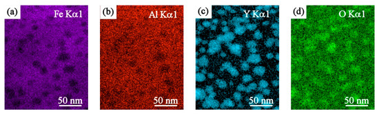 The chemical composition of nano-sized spherical particles from Figure 3b was further analyzed using STEM-EDX mapping, which confirmed the yttrium nanoparticles as the dominant strengthening agent (see Figure 4).