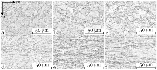 - Higginson, R.L.; Sellars, C.M. Worked Examples in Quantitative Metallography; Maney: London, UK, 2003; ISBN 1902653807. [Google Scholar]