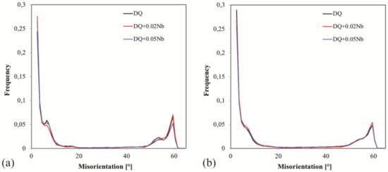 - Fossaert, C.; Rees, G.; Maurickx, T.; Bhadeshia, H.K.D.H. The effect of niobium on the hardenability of microalloyed austenite. Metall. Mater. Trans. A 1995, 26, 21–30. [Google Scholar] [CrossRef]