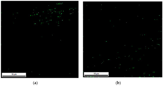 Phase maps by EBSD (a) specimen PT-γ-2 and (b) specimen PT-γ-3. Green areas correspond to retained austenite.