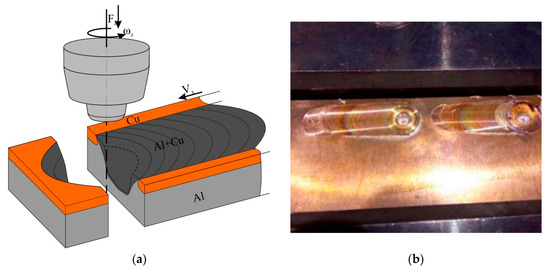 Commonly, copper is one of the widely used and efficient metals to carry out FSP on aluminum alloys and thus obtain the MMCs reinforced with Al-Cu intermetallic particles [23]. Intermetallic Cu-Al particle reinforced MMCs may be fabricated using friction stir welding (FSW) on dissimilar metals [24,25,26,27], multilayer friction stir brazing [28], die-casting, powder metallurgy, etc.