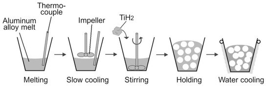 The semi-solid route, which was suggested by Hanahusa, can solve this problem. In this method, primary crystals are used as the thickener. Because these crystals have the same elements as the alloy, they do not become impurities [10]. In addition, the metal foams fabricated by the semi-solid route have a higher shock-absorbing efficiency [11].