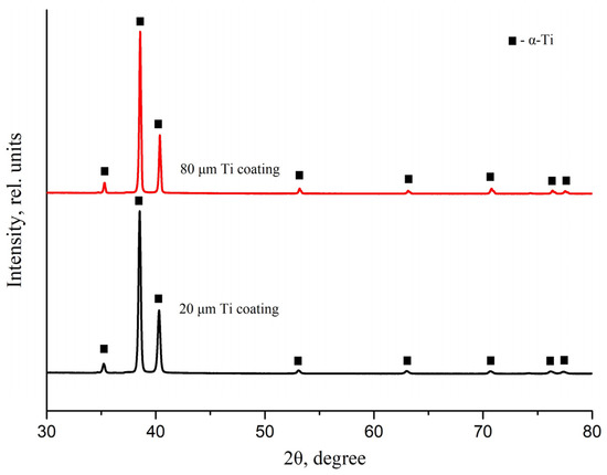 The results of the x-ray diffraction analysis shows that the as-received coatings consist of an α-Ti phase with a hexagonal close packaged lattice (Figure 5). There were no phases related to the substrate on the diffraction patterns due to the large thickness of the deposited coatings.