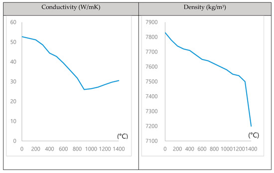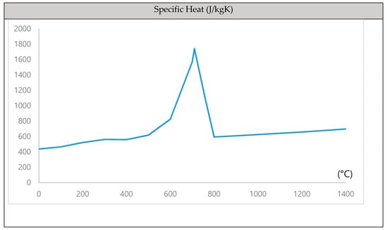 The modeling process was performed under the same conditions as the actual experiment, and the bead shape was modeled by referring to the bead shape in the experiment as shown in Figure 7. Figure 8 shows the material properties of the base metal and the bead, which were derived by using JMatPro.