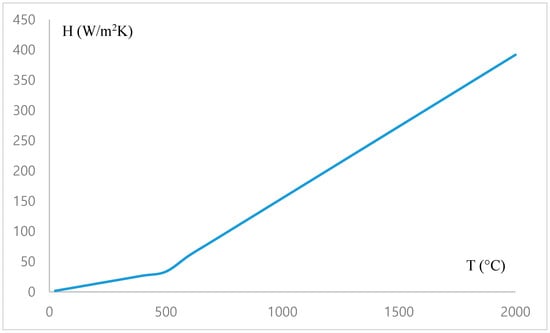 A moving heat source using the Goldak model was applied as the loading condition, and the film coefficients by temperature as the boundary conditions. Equation (6), Equation (7), and Figure 10 show the details of the boundary conditions. The film coefficients were applied to reflect both convective and radiant heat transfer by referring to a related study [12].