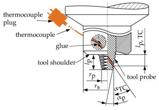 - Costanzi, G.; Bachmann, A.; Zäh, M.F. Entwicklung eines FSW-Spezialwerkzeugs zur Messung der Schweißtemperatur: (Development of an FSW tool to measure the Welding Temperature). DVS Ber. 2017, 337, 119–125. [Google Scholar]
