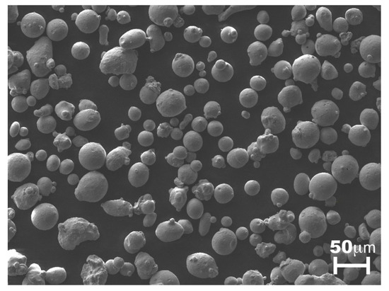 Scanning electron microscopy (SEM) image of initial AISI 316L powder.