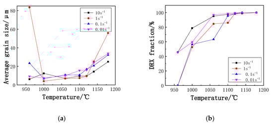 The average grain size (a) and DRX fraction (b) of the specimens deformed at different temperature with various strain rates.