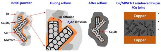 Schematic illustration of TLP bonding using Sn-Cu coated multi-walled CNTs [].