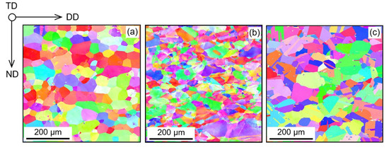 - Paul, H.; Morawiec, A.; Baudin, T. Early Stages of Recrystallization in Equal-Channel Angular Pressing (ECAP)-Deformed AA3104 Alloy Investigated Using Scanning Electron Microscopy (SEM) and Transmission Electron Microscopy (TEM) Orientation Mappings. Metall. Mater. Trans. A 2012, 43, 4777–4793. [Google Scholar] [CrossRef]