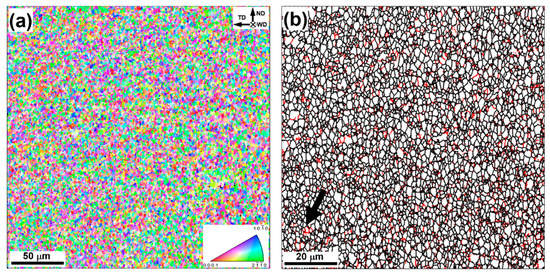 - Humphreys, F.J. Quantitative metallography by electron backscattered diffraction. J. Microsc. 1999, 195, 170–185. [Google Scholar] [CrossRef]
