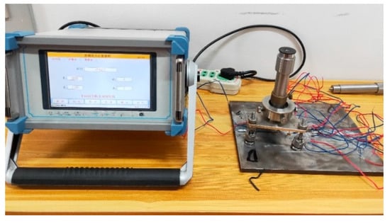 In order to verify the validity of the simulation method, a few measuring points were selected on the surface of the workpiece. The residual stress test points before and after HESD welding are shown in Figure 5 and Figure 6, respectively. The residual stress measurement was implemented by the KJS-3 indentation method stress test system (Developed by Institute of metals, Chinese Academy of Sciences, Shenyang, China). The device mainly includes two parts: a stress tester and an indentation manufacturing part. The latter consists of a centering microscope (used for centering in order to determine the impact point), a triangular fixed base (for positioning and fixing), and a hammer (manufacturing indentation), as shown in Figure 4.