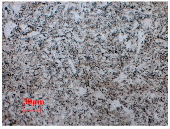 Figure 23 shows the metallographic structure of the HESD repair welding area. The microstructure is dominated by grid-like ferrite that is precipitated along the austenite grain boundary, and there is a little martensite. The grain size is finer and more uniform, which is approximately equiaxed. This is probably because the HESD repair welding process has an extremely high cooling rate, which will inhibit the growth of grains, thereby refining the grains in this area, and the mechanical properties of the joints after the HESD repair welding have, to a certain extent, been improved accordingly. Through the above microstructure analysis and the previous mechanical properties test, one can see that the HESD repair welding improved mechanical properties like the plasticity and toughness of the welded joint, perhaps as a result of the very rapid and repeated heat input during the HESD repair welding, which played a role in the heat treatment of the adjacent areas.