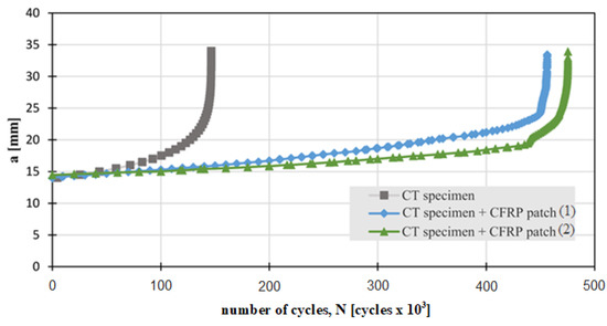 | Crack Length | CT Specimen | CT Specimen + CFRP Patch | |||