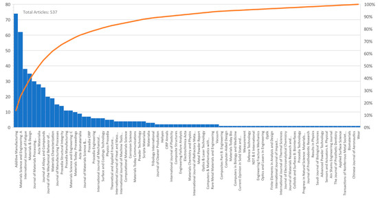 Pareto’s chart of the research “Additive Manufacturing + Ti–6Al–4V” on ScienceDirect.