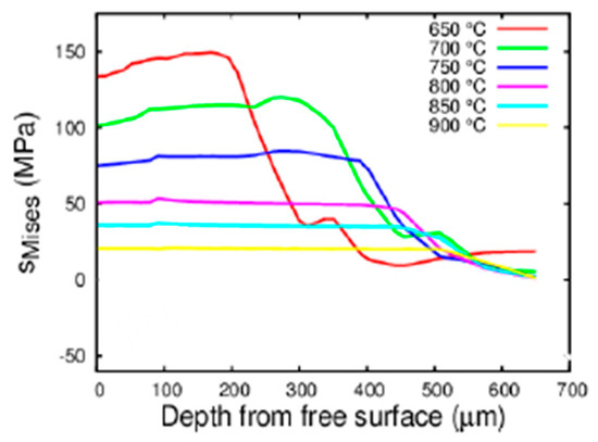 In a similar study, Vastola et al. [117] investigated, through FEM, the effect of beam scan speed, beam power density, beam size, and chamber bed temperature on the distribution and magnitude of residual stresses on EBMed Ti–6Al–4V samples. The authors reported that lower scan speeds deepened the Heat-Affected Zone (HAZ), while higher speeds reduce the HAZ. Furthermore, a 20% increase of the beam power caused an approximate 15% growth of the HAZ. Moreover, the researchers also stated that small beam sizes provided higher stresses within a smaller Heat-Affected Zone. Finally, it was concluded that the bed pre-heating temperature was the most crucial parameter for reducing the residual stresses, as a 50 °C increase of the pre-heating temperature promoted an approximate 20% decrease of residual stresses, as shown in Figure 15.