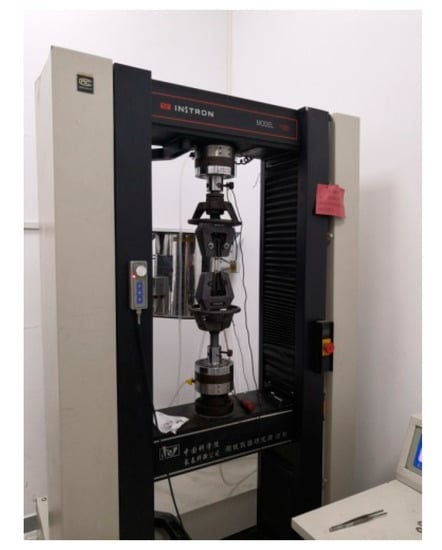 Table 1 lists the chemical composition of ADC12 aluminum alloy. The alloy has a hardness of approximately 86 HB and a melting temperature of 580 °C. The quasi-static experiments were performed at the tensile rate of 1 mm/min at room temperature via a universal material testing machine (Instron, High Wycombe, UK). The quasi-static tensile experiment setup is shown in Figure 1. The model of the universal material testing machine was Instron 1185. The cylindrical specimens were φ5 mm × 100 mm. The extensometer gauge length was 50 mm. In addition to the requirements for geometric size, the specimens should have good parallelism and perpendicularity, and which were kept at approximately 0.01 mm and the surface roughness Ra = 1.6 μm. The experiment was repeated three times.
