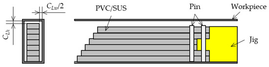 Figure 5 shows a schematic of the mandrel. The core material has a structure in which 0.01 mm to 2.0 mm PVC (polyvinyl chloride) and stainless-steel thin plates are bundled by a jig. The flexural rigidity of the laminated mandrel was adjusted to minimize the adverse effect on the workpiece during bending. In addition, the clearance with the workpiece was adjusted to CL = 1.0 mm in both width and height.