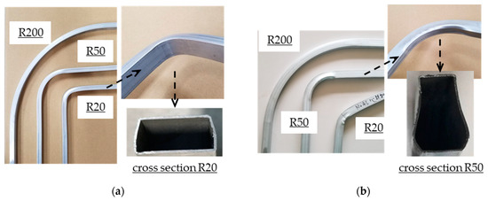 - Utsumi, N.; Sakaki, S. Countermeasures against undesirable phenomena in the draw-bending process for extruded square tubes. J. Mater. Process. Technol. 2002, 123, 264–269. [Google Scholar] [CrossRef]