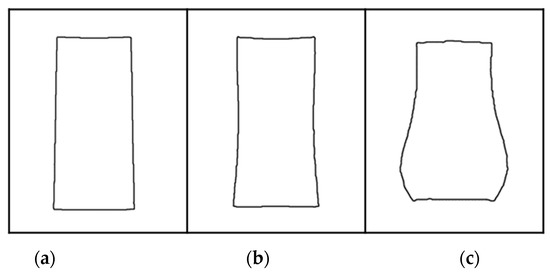 In addition, Figure 19 shows the result of FEA using a model in which the wall thickness of the rectangular tube was changed. The wall thickness of the rectangular tube increased; the above-mentioned deformation in which the web collapses inward and wavy deformation was not observed, but the deformation was mainly trapezoidal. Thus, it is considered that the pear-shaped or corrugated cross-section deformation is peculiar to the ultra-thin rectangular tube. In order to suppress this waveform deformation, it is necessary to adjust the clearance between the rectangular tube and the core material.