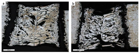 Since the results of preliminary investigations indicated successful welding results at energy inputs of around 20 −1, as can be seen in the results of Lisiecki et al. [], who used a disk-laser to weld zinc-coated steel sheets of the same thickness and joint configuration, an experimental design with four different energy inputs was used in the present investigation, as can be seen in Table 2.