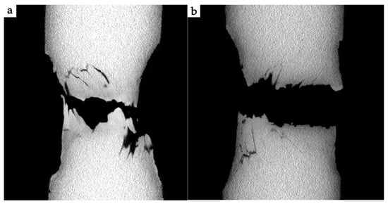 Moreover, whereas the failure in the welded and uncorroded specimens of AISI 430Ti occurred within the weld seam or base material in a ductile manner (Figure 11 and Figure 12), the mode of failure became rather brittle with an increasing exposure to the corrosive environment (Figure 16) and failure then only occurred in the weld seam. This fact was further investigated through -CT analysis of the fracture surfaces, depicted in Figure 17.