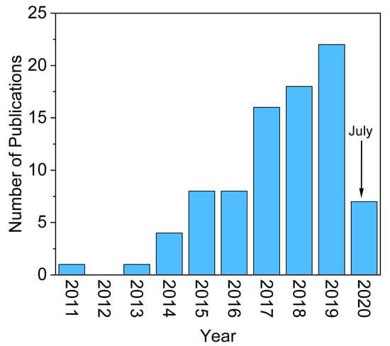 A graph listing the number of journal publications that feature the serrated flow phenomenon in HEAs for years 2011 through July 2020 is displayed in Figure 7. The results featured in the graph were found via the Web of Science database. As can be seen, the number of articles continually increased per year. Before moving on, it should be mentioned that the numbers for 2020 are still ongoing.