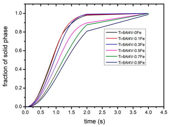 Solute distribution of Ti–6Al–4V–0.5Fe in the liquid phase.