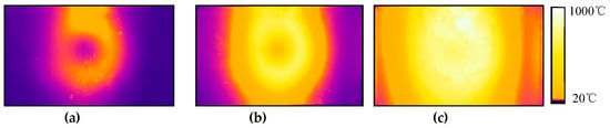 Temperature variation of induction heating workpiece: (a) in the beginning; (b) in the middle; (c) at the end.