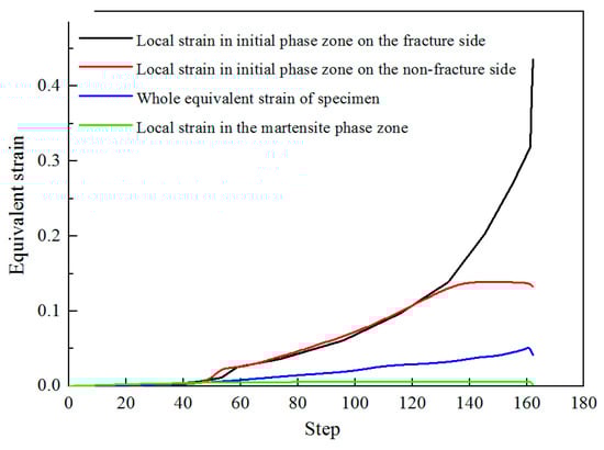 Equivalent strain in different phase regions by virtual extensometer.