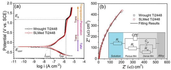 - Bai, Y.; Li, S.J.; Prima, F.; Hao, Y.L.; Yang, R. Electrochemical corrosion behavior of Ti-24Nb-4Zr-8Sn alloy in a simulated physiological environment. Appl. Surf. Sci. 2012, 258, 4035–4040. [Google Scholar] [CrossRef]