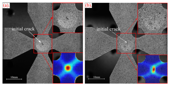 DIC crack initiation detection: (a) Load ratio 1:1; (b) Load ratio 2:1.