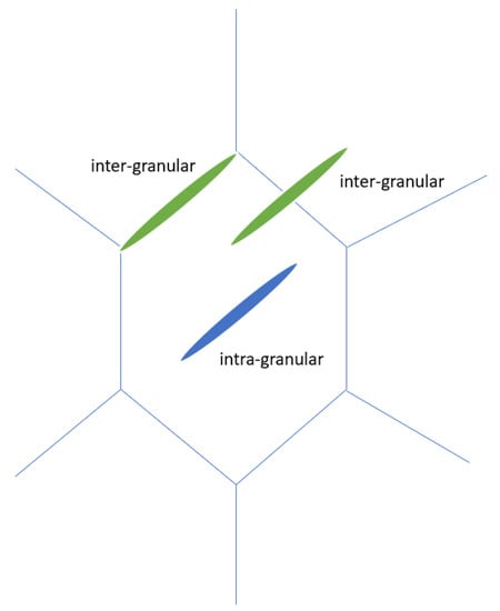 According to the correlation between hydride and the grain boundary, hydride can be divided into two categories: (1) inter-granular and (2) intra-granular. A schematic illustration of two kinds of hydrides is shown in Figure 1.