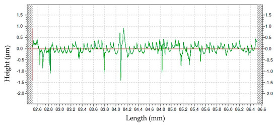 Figure 14 corresponds to a more irregular profile, with higher valleys than peaks, which correspond to the craters that are produced by the electrical discharges of the WEDM process. As a general trend, along the profile peak to valley distance has a value of around 6 μm. The maximum peak to valley distance is close to 9 μm.
