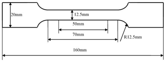 Specimens for tensile experiments were cut from hot-rolled slabs along the rolling direction and then machined to the dimension according to the GB/T2975 standard, as shown in Figure 2. Tensile strength, yield strength and elongation were obtained on a CMT-5105 tensile testing machine (MTS, Shenzhen, China) at ambient temperature, and the tensile rate was 5 mm/min. Three tensile experiments were conducted per condition.