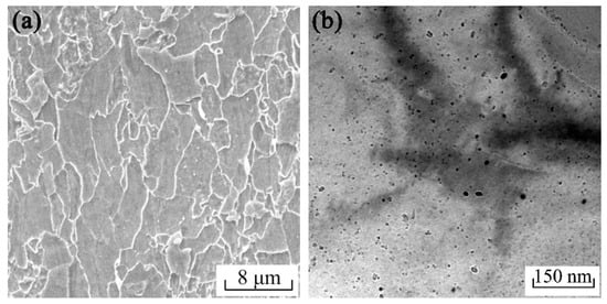 (a) SEM and (b) TEM of the hot-rolled steel.