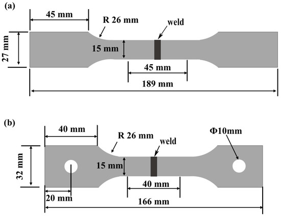 Dimensions of the specimens in tensile testing: (a) sample design for room temperature testing; (b) sample design for high temperature testing.