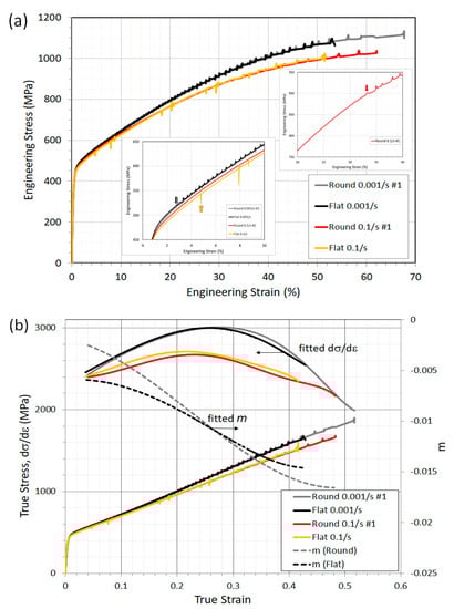 - All of the specimens fracture before the Considère criterion (dσ/dε ≤ σ) is met, although the behavior of the round samples is closer to ideal than the flat specimens in this respect.
