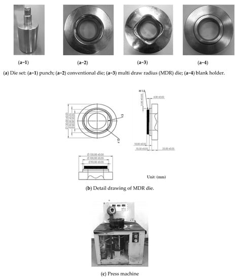 - Sezek, S.; Savas, V.; Aksakal, B. Effect of Die Radius on Blank Holder Force and Drawing Ratio: A Model and Experimental Investigation. Mater. Manuf. Process. 2010, 25, 557–564. [Google Scholar] [CrossRef]