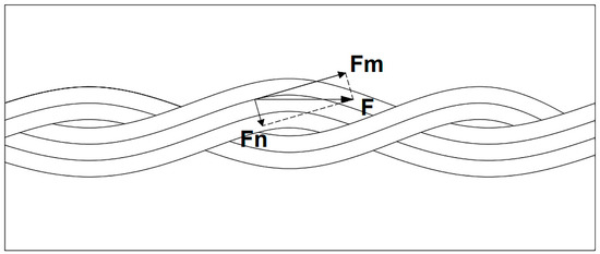 where σc, σf, and σm are the tensile strengths of the composite material, the carbon fiber, and the matrix material, respectively. θ is the average orientation angle of the braid carbon fiber rope relative to the axial stretching direction (as shown in Figure 13), and Vf is the volume fraction of reinforced carbon fibers in the composite.