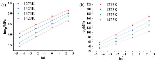 where is the strain rate (s−1); A, α, and n are the material constants; σp is the peak stress; Q is the deformation activation energy (J·mol−1); R is the gas constant (8.314 J·mol−1·K−1); and T is the temperature (K).