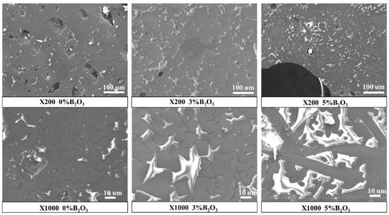 Scanning electron microscope (SEM) images of H-VTM at B2O3 addition.