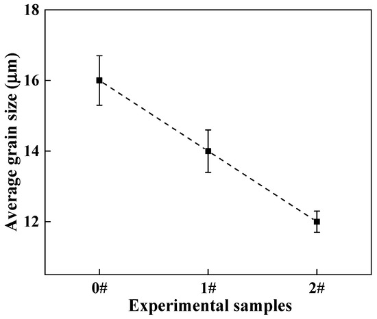 Figure 7. Average grain sizes of the 0#–2# experimental samples.