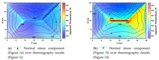The build jobs of both samples were supervised in-situ by thermography in order to receive more detailed information on the local variation of the temperature gradient and cooling rates. Figure 3a,b display the maximum apparent temperatures at the mid-height layer.