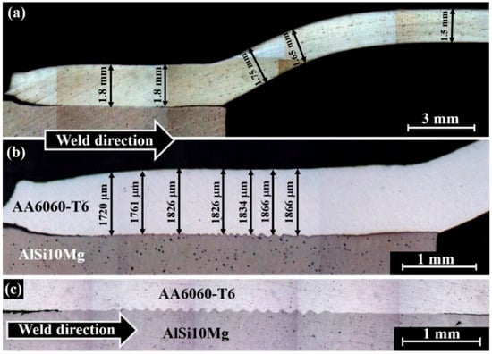 - Shribman, V.; Nahmany, M.; Levi, S.; Atiya, O.; Ashkenazi, D.; Stern, A. MP welding of dissimilar materials: AM laser powder-bed fusion AlSi10Mg to wrought AA6060-T6. Prog. Addit. Manuf. 2019, 5, 71–181. [Google Scholar] [CrossRef]