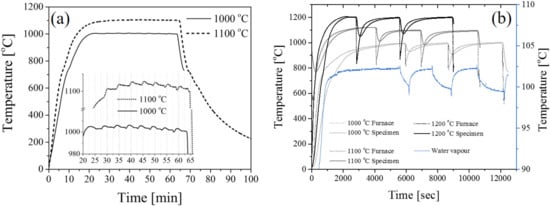 Thermal cycles applied for (a) oxidation under dry air and (b) water vapor.