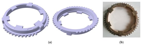 Structure of synchronizer ring: (a) 3D model, (b) actual part.