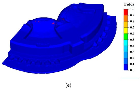 As for the synchronizer ring formed in the experiment of process plan 2 (Figure 15b), the folding defect only occurred at the inner flash. No folding defect appeared at other parts. The forging was fully filled.